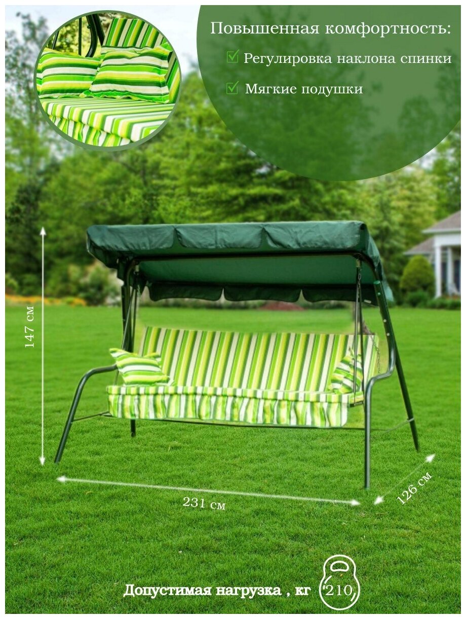 Качели садовые 3х-местные, 231х126х147.8 см, 210 кг, Ника, с москитной сеткой, с1277 интересное: