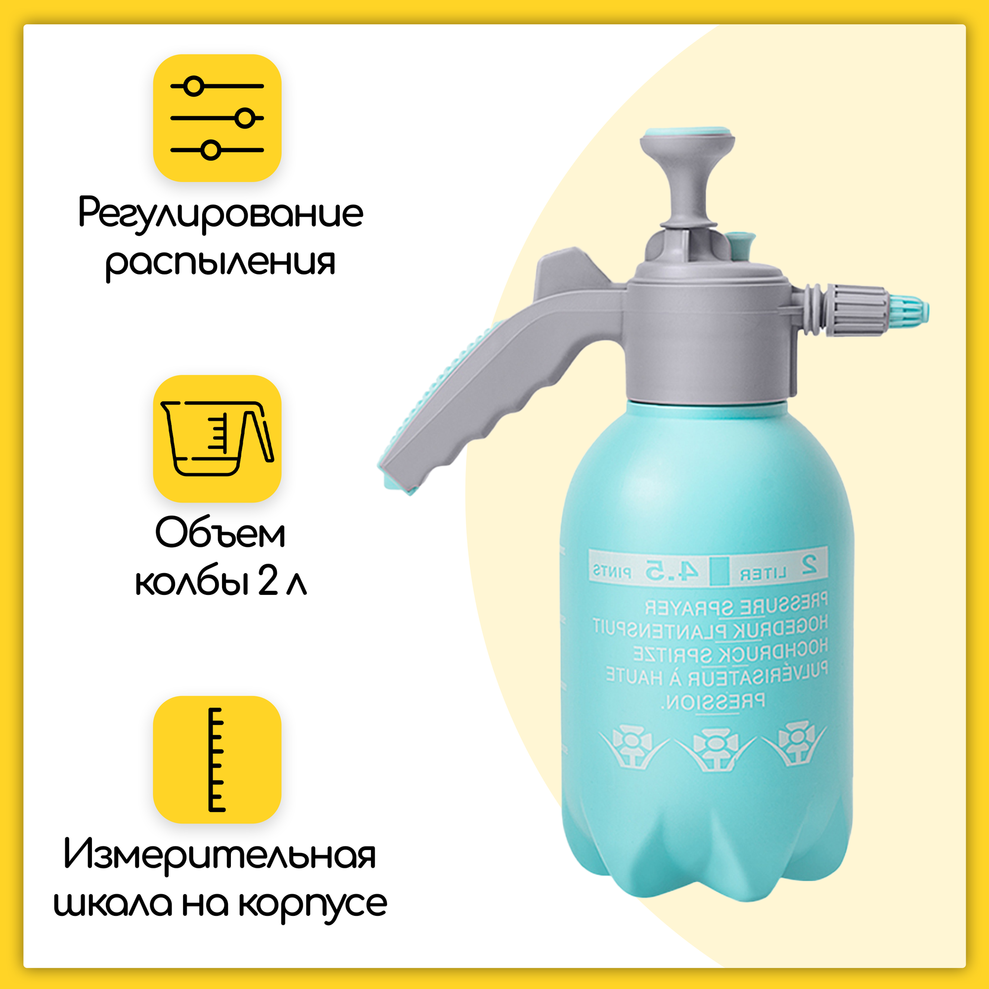 Купить Пульверизатор 2000 мл, опрыскиватель садовый, распылитель помповый, с регулируемой форсункой, голубой