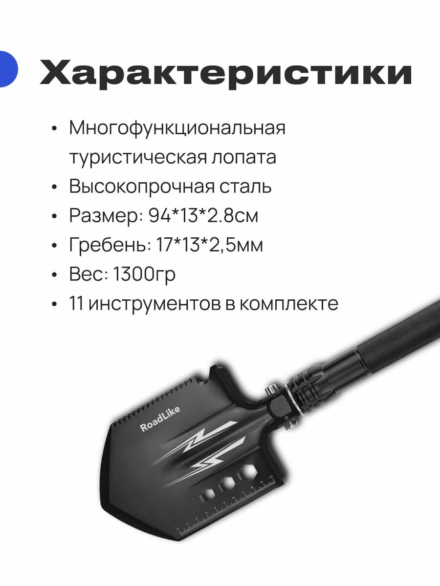 Лопата туристическая многофункциональная RoadLike RLM01 черный интересное:
