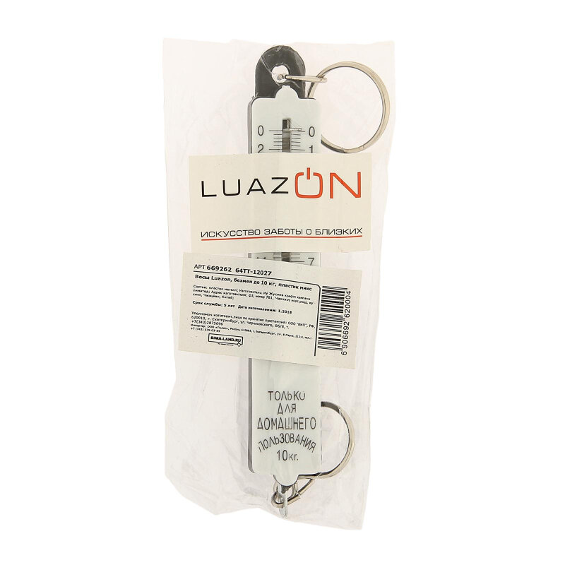 Купить Весы безмен механический LuazON до 10 кг,цена деления 200г,микс