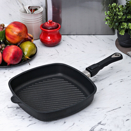 Сковорода гриль квадратная 28х28 см с антипригарным покрытием для индукционной плиты со съемной ручкой AMT Gastroguss арт. AMT I-E285G