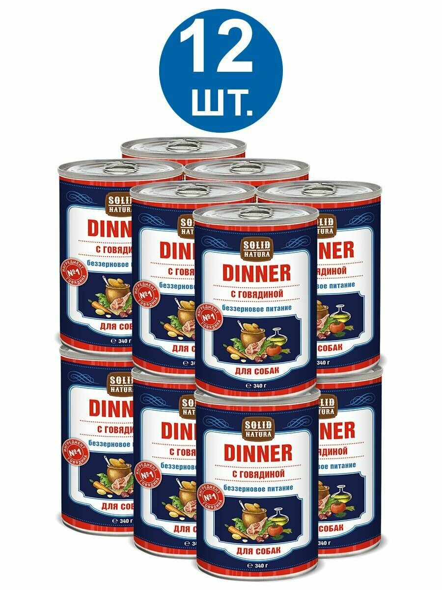 Влажный корм для собак Solid Natura Dinner, беззерновой, говядина 1 уп. х 12 шт. х 340 г