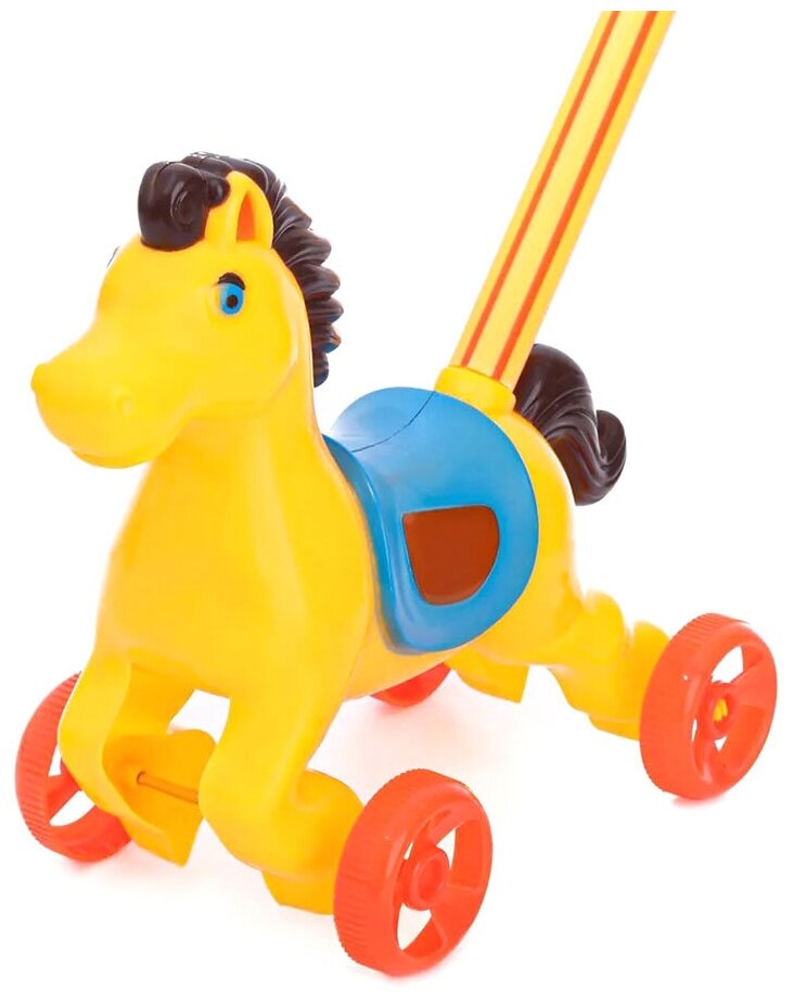 Игрушка-каталка "Лошадка" жёлтая на палке с ручкой