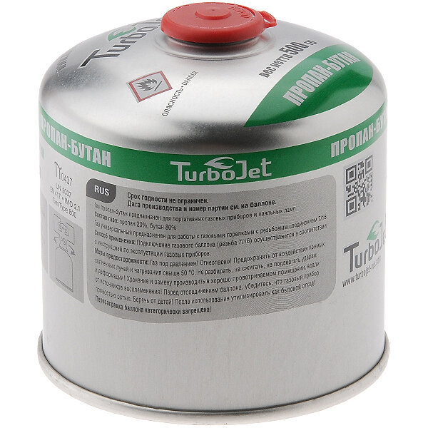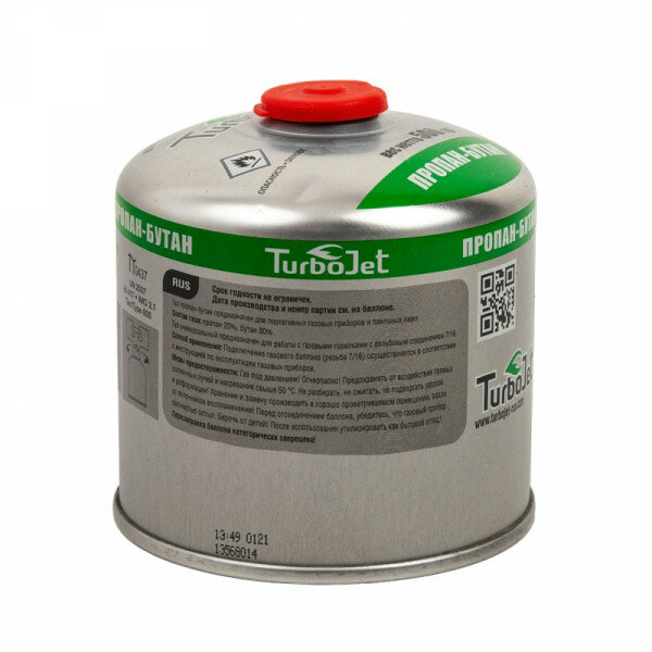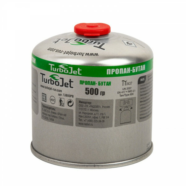 Баллон TJ800PB (туризм) резьбовое соединение 7/16, газ пропан-бутан 500г (TurboJet)