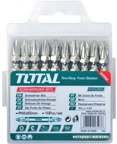 Набор бит двусторонних PH2 65 мм сталь S2 10 шт TOTAL TAC16PH233 интересное: