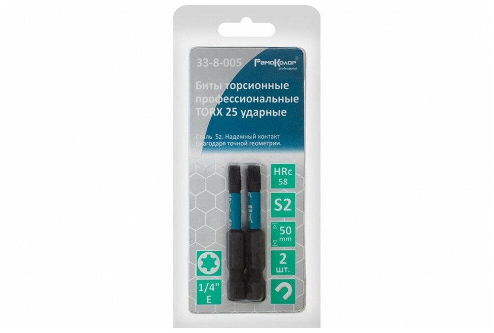 Биты профессиональные торсионные (2 шт; T25x50 мм; сталь S2; 1/4" Е) РемоКолор 33-8-005 .