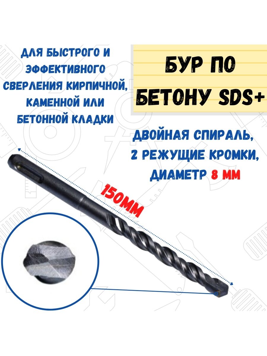 Бур по бетону SDS PLUS, две режущие кромки 8x150 мм Hardax 36-4-508 интересное: