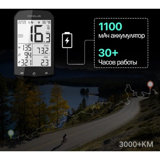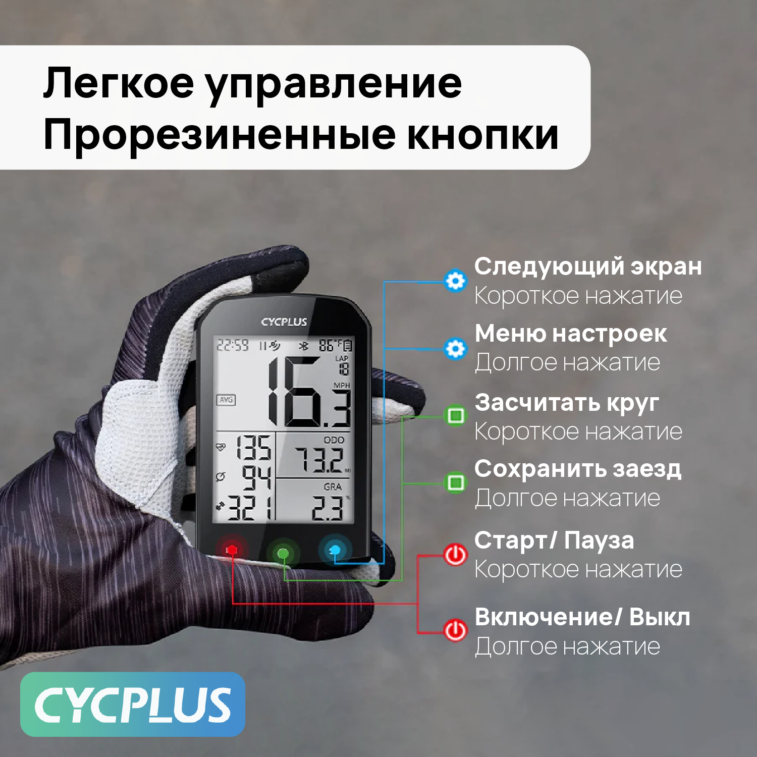 Cycplus M1 GPS 16 функций / Велокомпьютер беспроводной