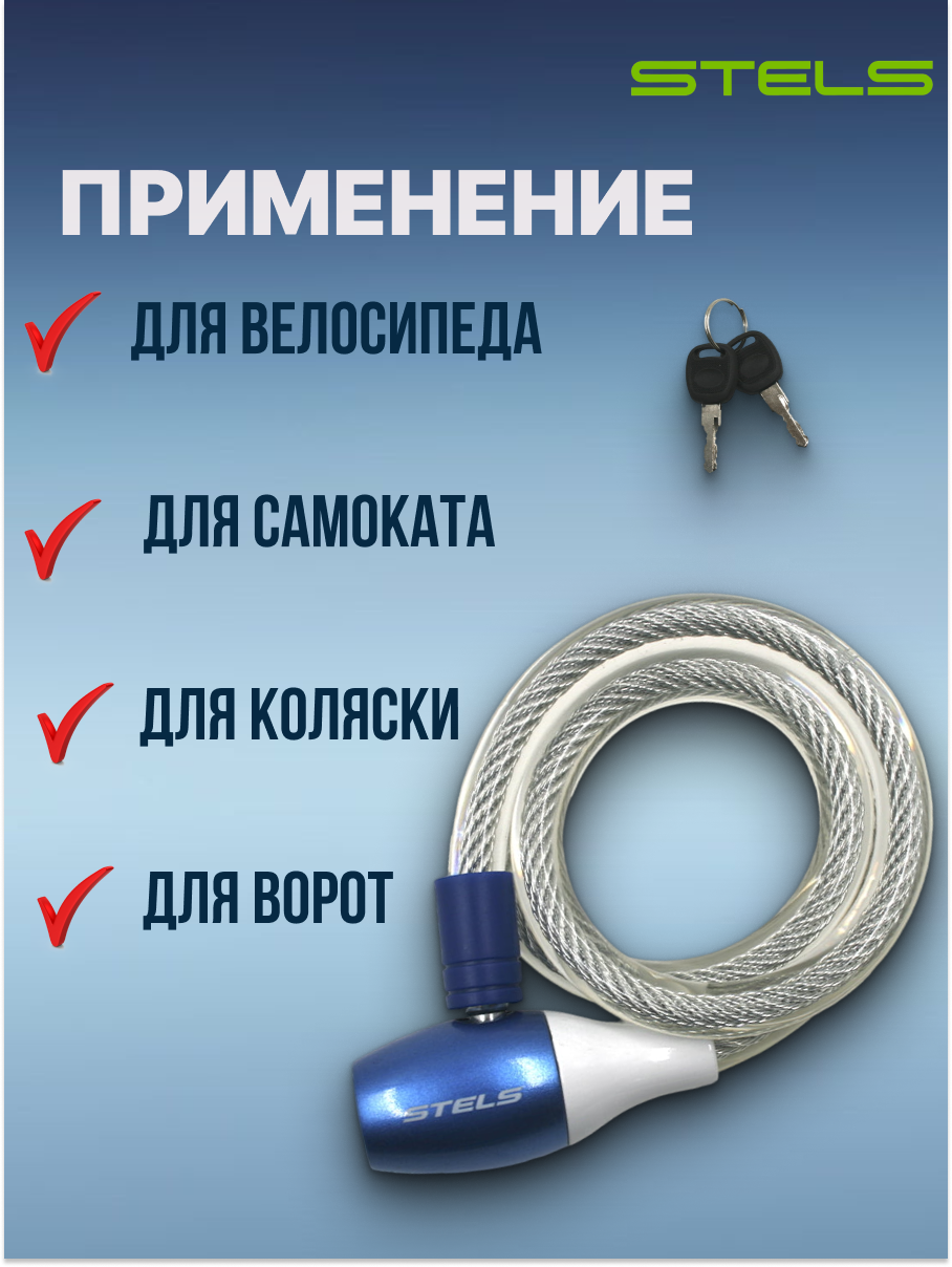 Трос-замок для велосипеда STELS ключевой 8х1800мм велозамок