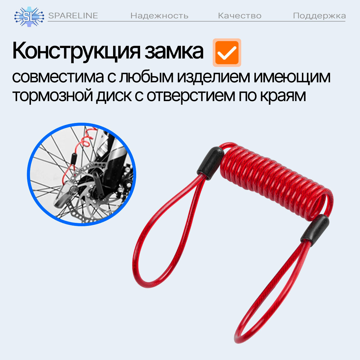Противоугонный тросовый замок на тормозной диск электросамоката, велосипеда, красный интересное: