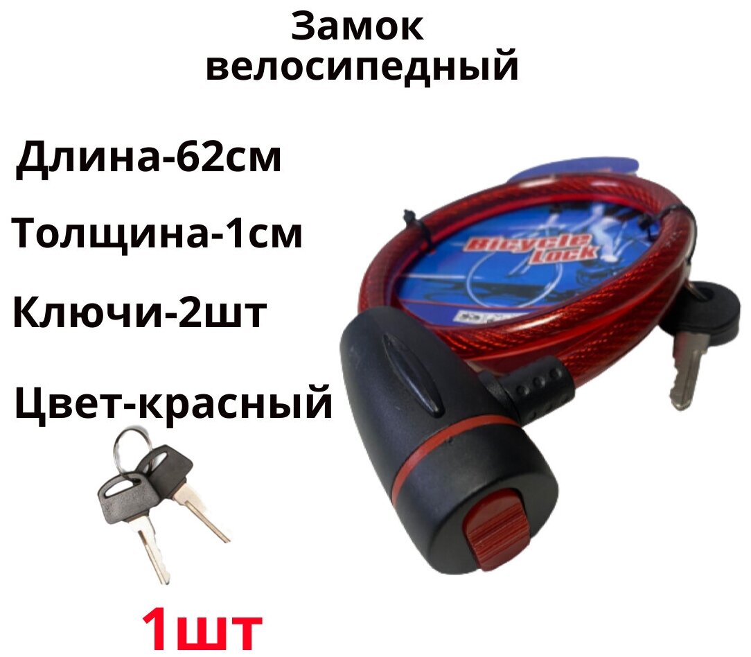 Троссовый замок для велосипеда ,самоката,коляски красный 62см с крышкой интересное: