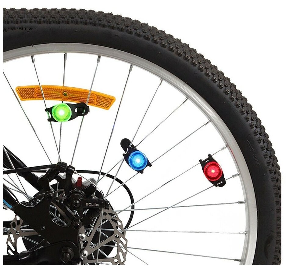 Фонарь велосипедный на спицы, световой, 1 шт CR2032, 3 х 13 см, микс