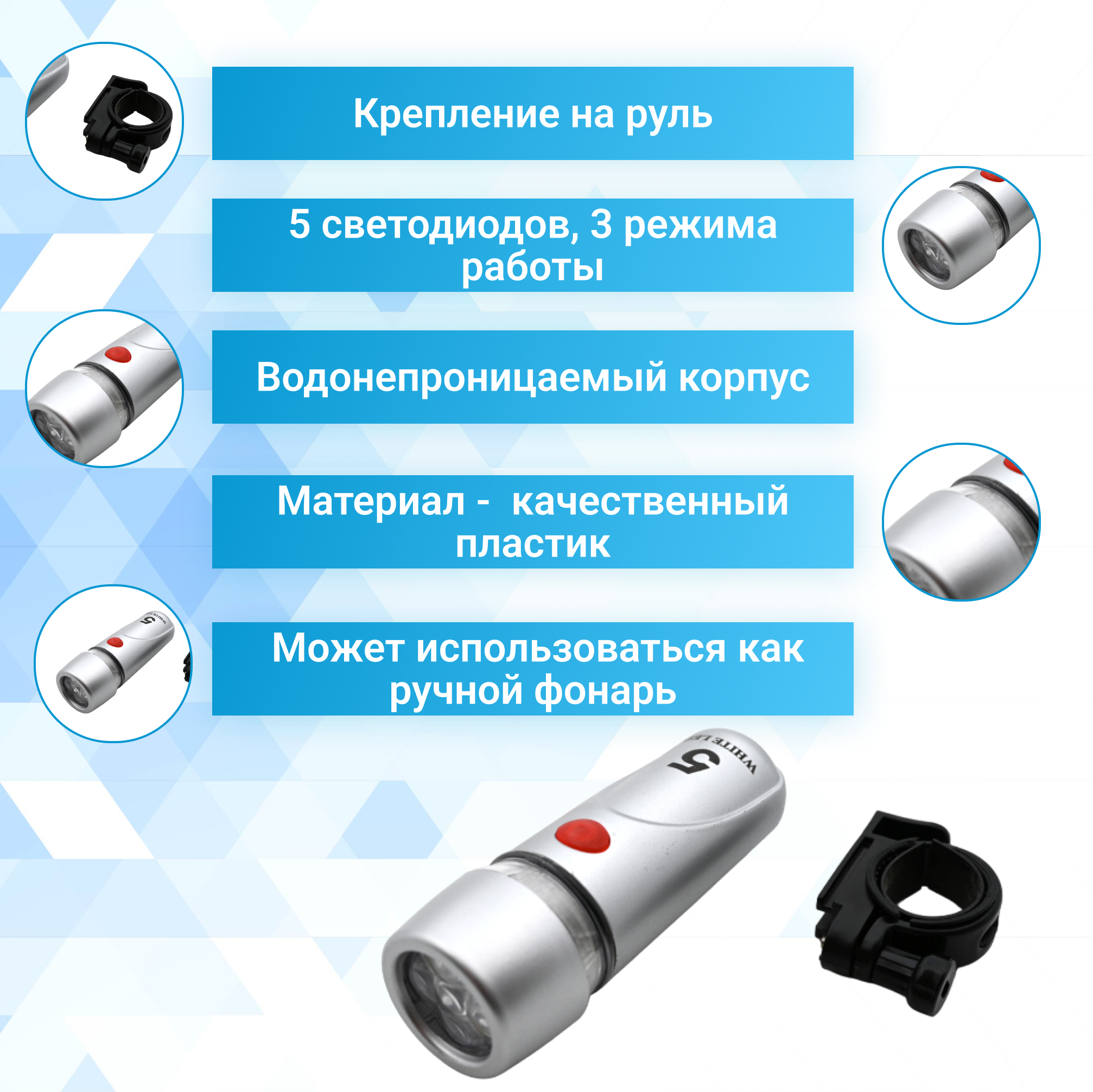 Фонарь передний STELS JY-808-11 (серебристый) 560033 интересное: