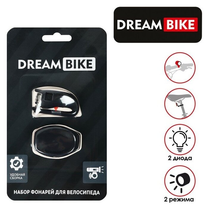 Комплект Dream Bike, велосипедных фонарей, JY267-2JA, 2 диода, 2 режима, цвет черный интересное: