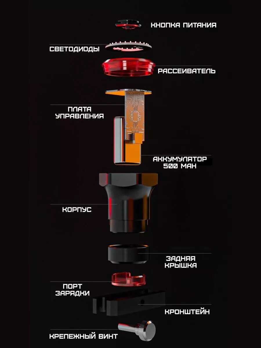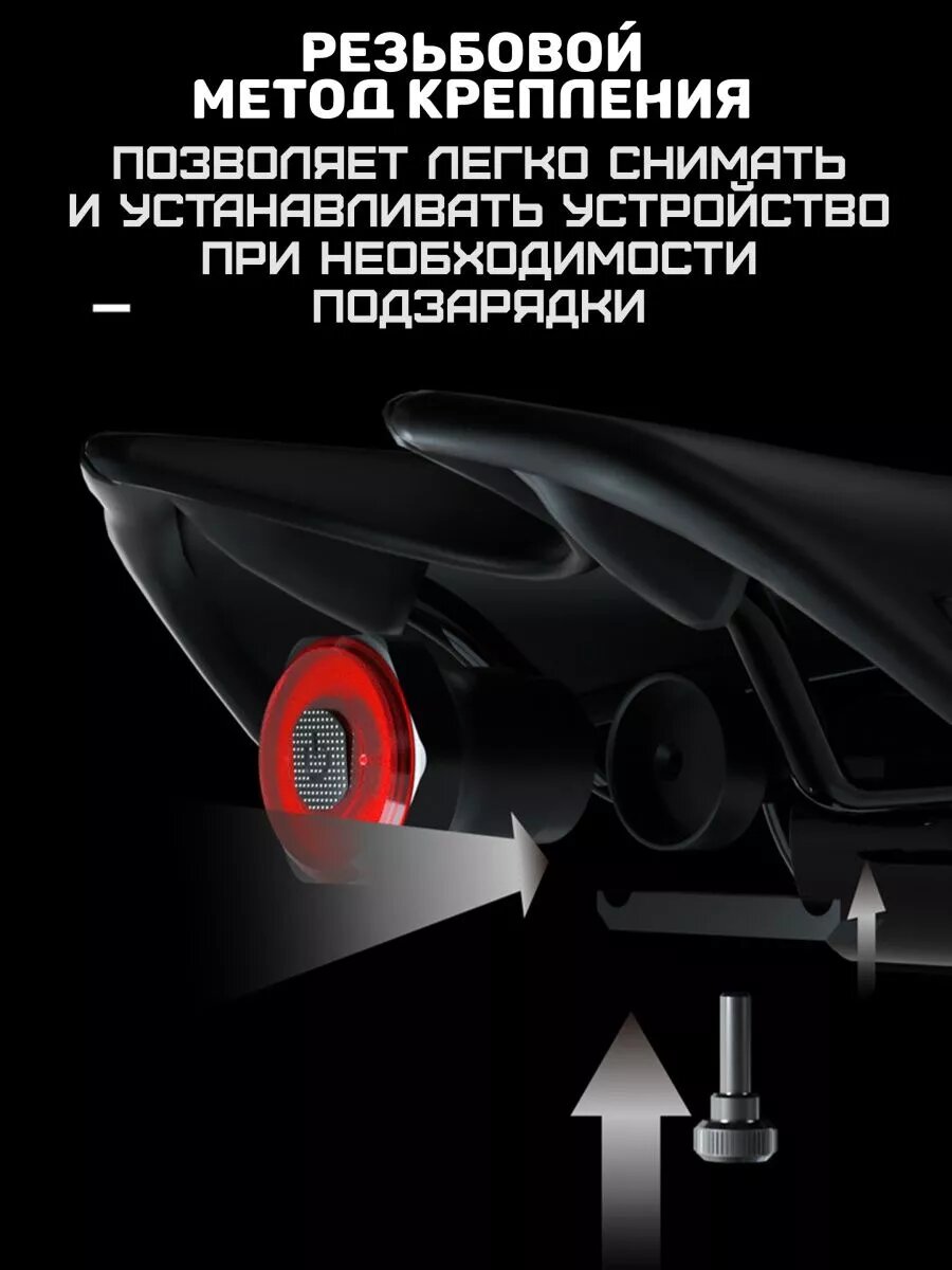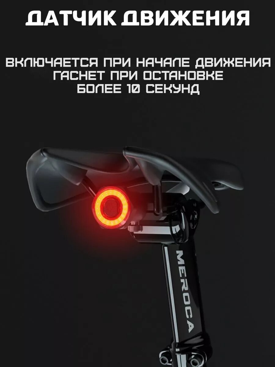 Светодиодный стоп-сигнал для велосипеда с датчиком торможения / Задний фонарь на велосипед с креплением на седло интересное: