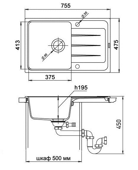 | Ширина мойки | 75 см |