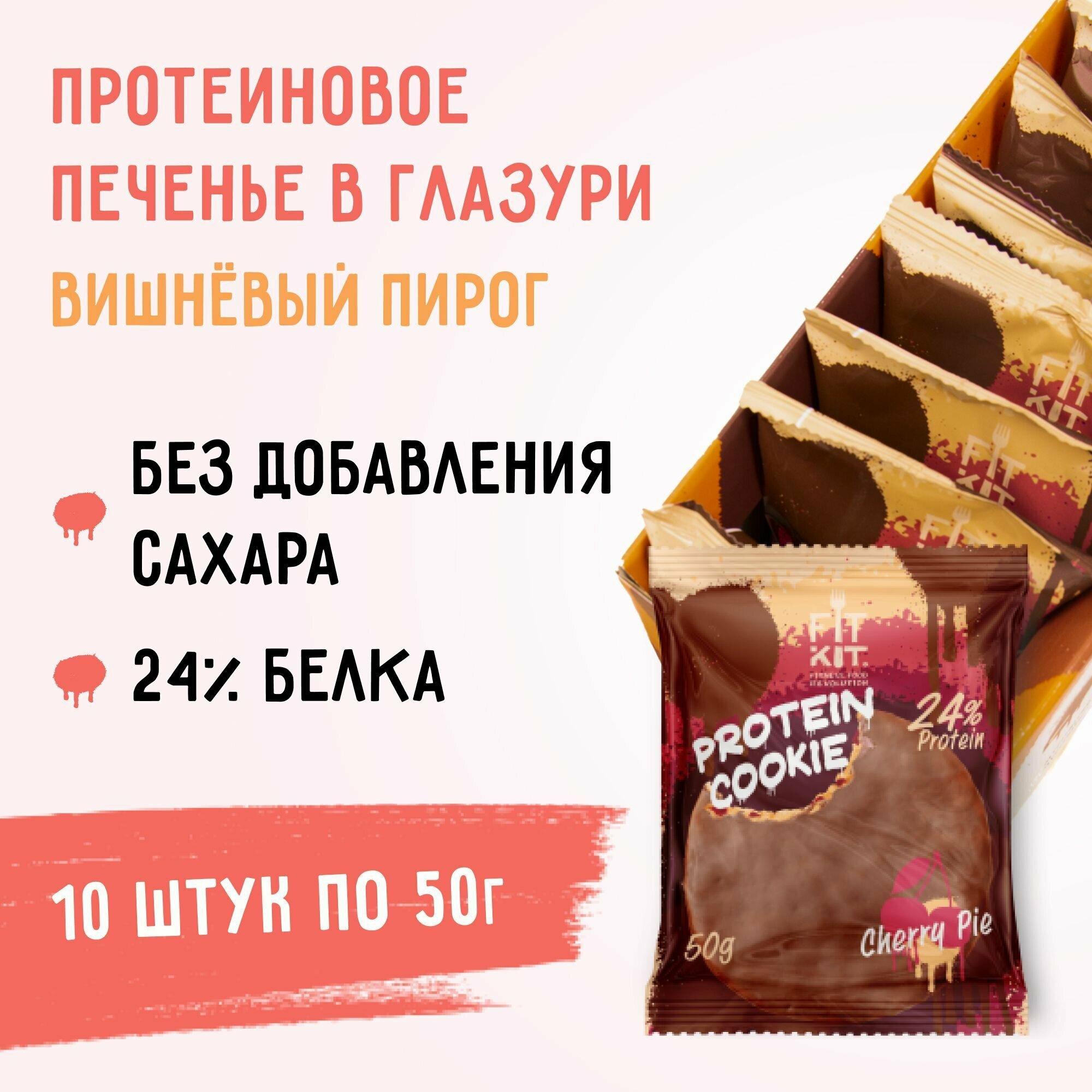 Протеиновое печенье без добавления сахара FIT KIT Choco Cookie Вишнёвый пирог,10шт х 50г правильное спортивное питание /полезные сладости / спорт