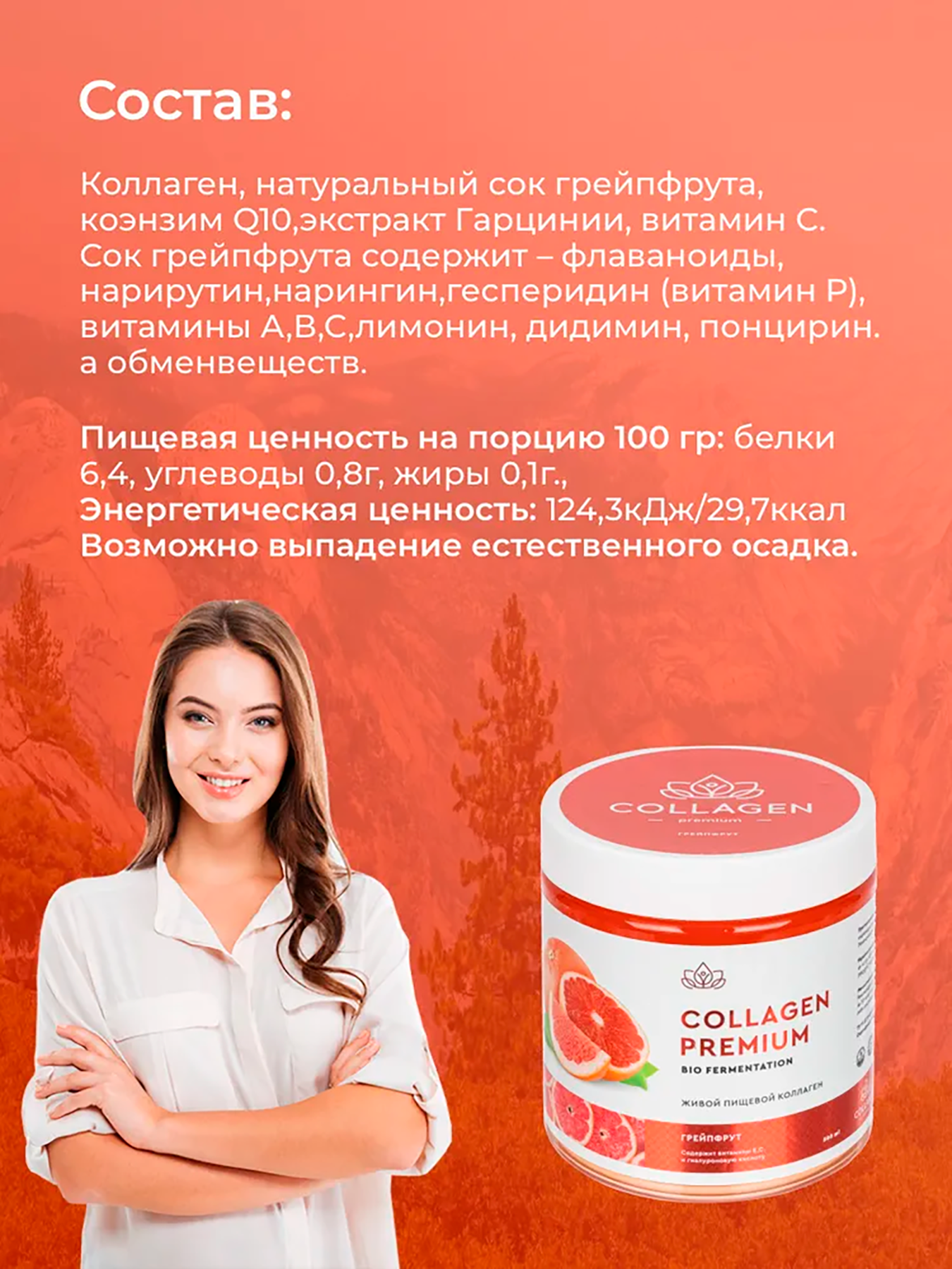 Купить Натуральный пищевой коллаген Collagen Premium с соком грейпфрута для похудения 230 гр