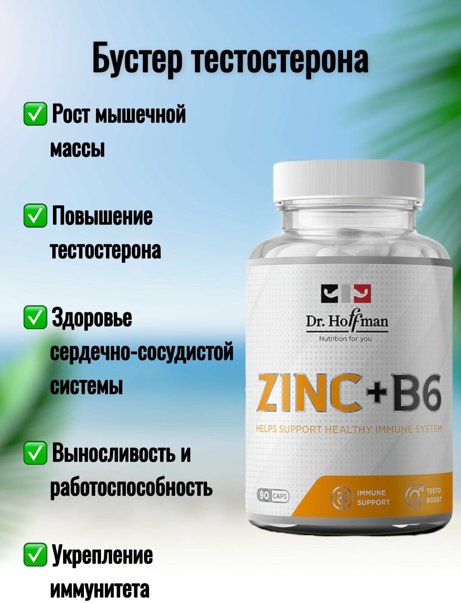 Купить Цинк + Витамин B6 для выработки тестостерона / Zinc + B6 Dr. Hoffman / 90 капсул