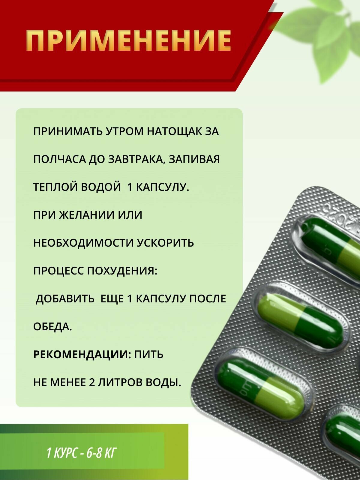 Продукт распределен по капсулам. Очень удобно в применении. В первую неделю после приема наблюдается снижение аппетита. |