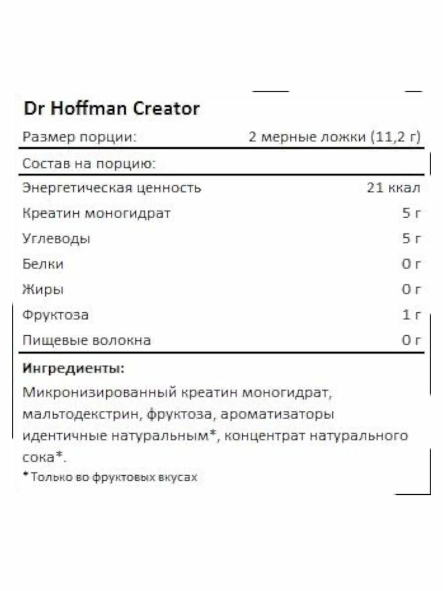 Моногидрат креатина Dr Hoffman Creator без вкуса 500 гр