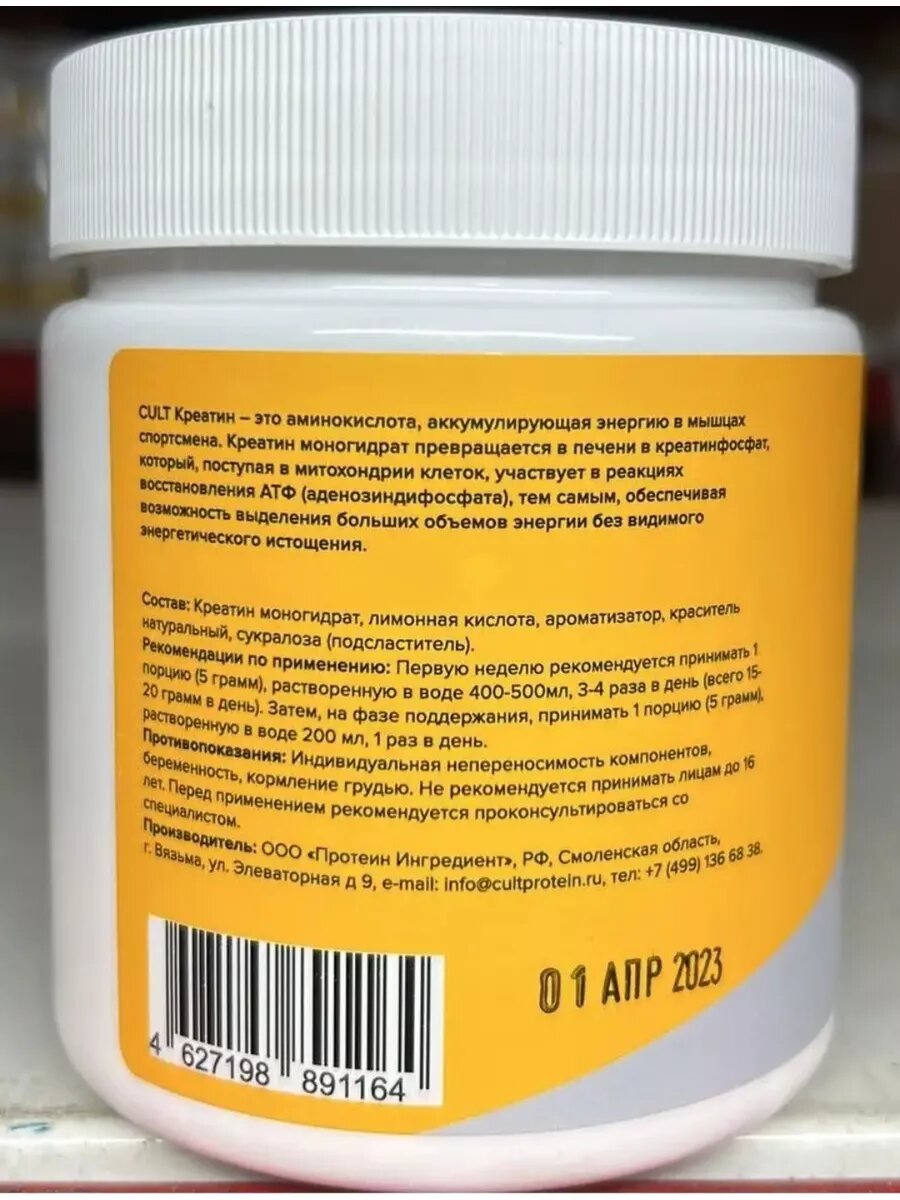 СохранитьКреатин моногидрат Cult Creatine Monohydrate - 150 грамм, апельсин интересное: