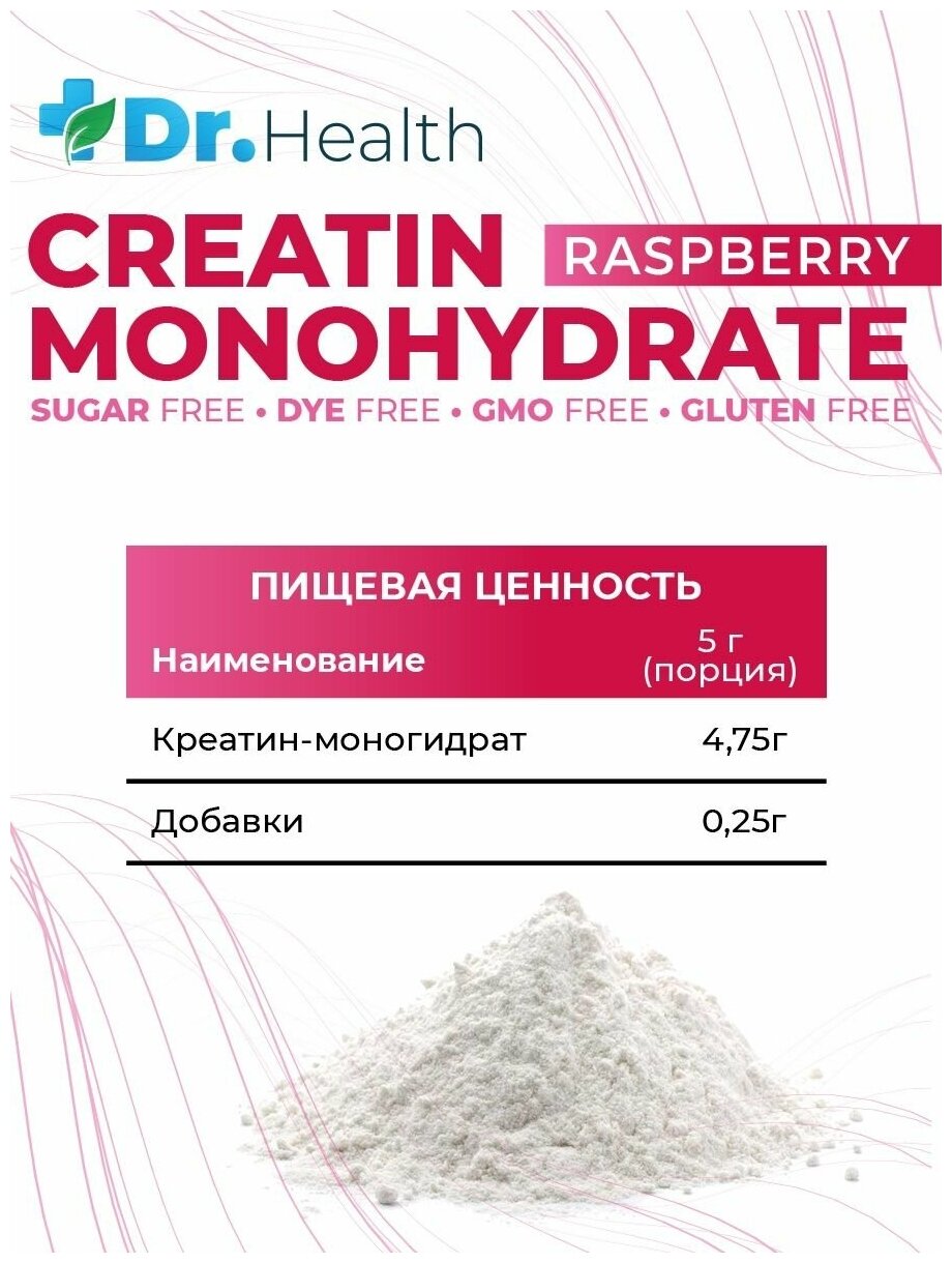 Купить Dr. Health Креатин моногидрат порошок со вкусом Малина 300г
