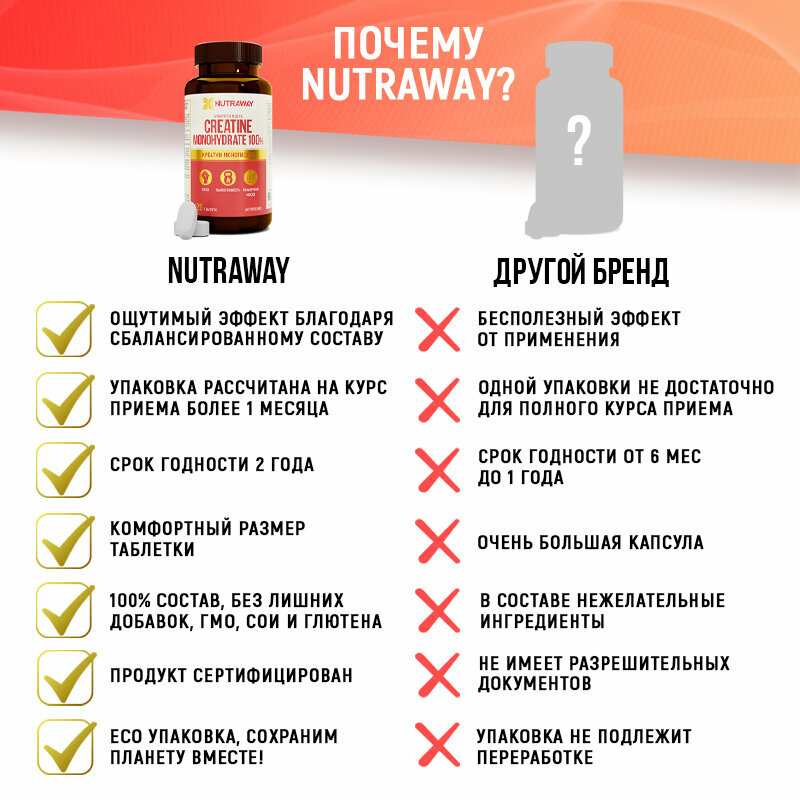 Креатин Моногидрат 100% / Creatine Monohydrate 100% Nutraway 120 таблеток интересное:
