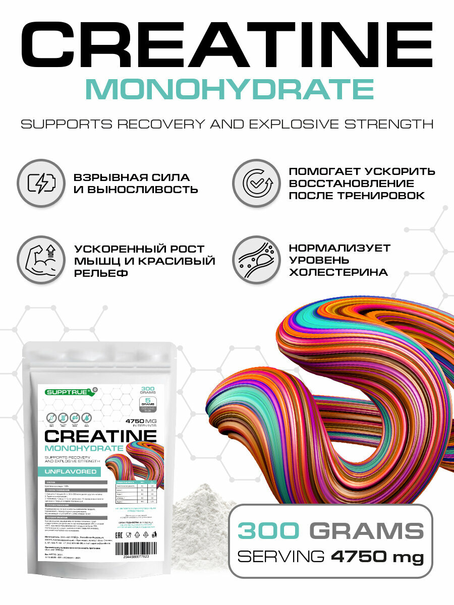 Supptrue Креатин моногидрат порошок 300г интересное: