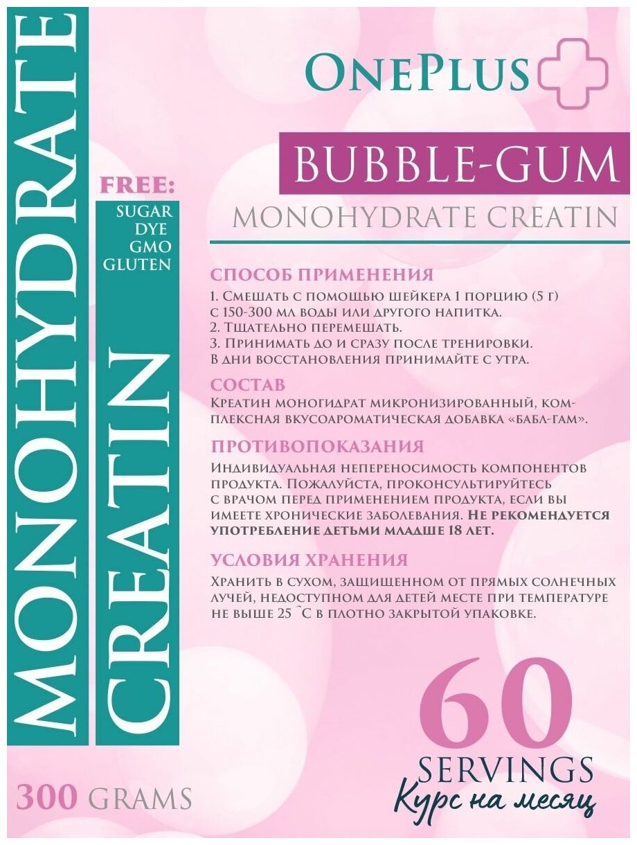 One Plus Креатин моногидарт порошок со вкусом Бабл-Гам 300г интересное: