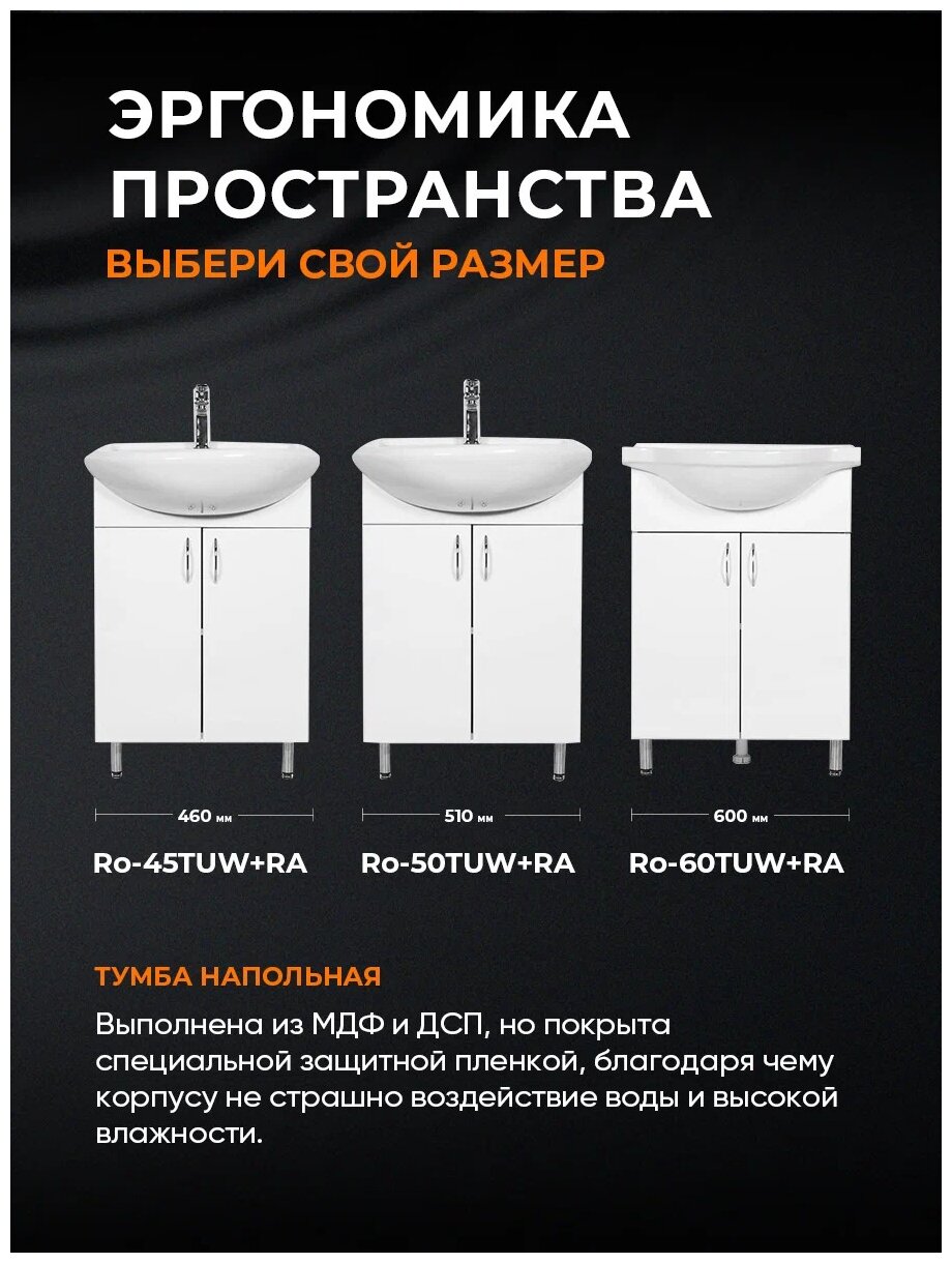 Тумба ORANGE с раковиной Роса Ro-60TUW+RA напольная, белый глянец интересное: