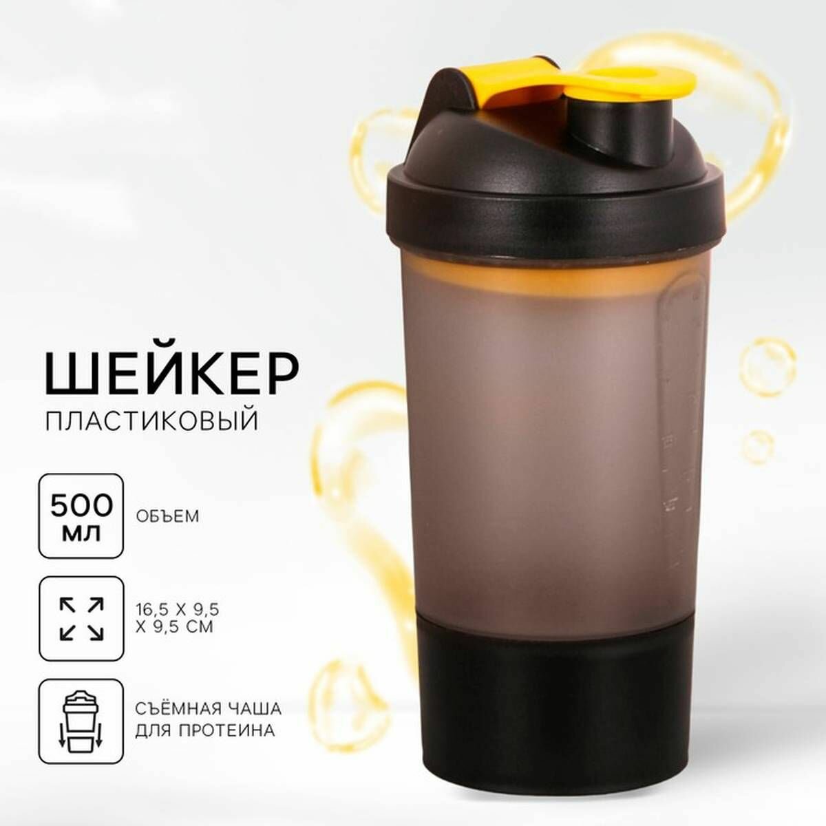 Шейкер спортивный, с чашей под протеин, чёрный, 500 мл, 3794662