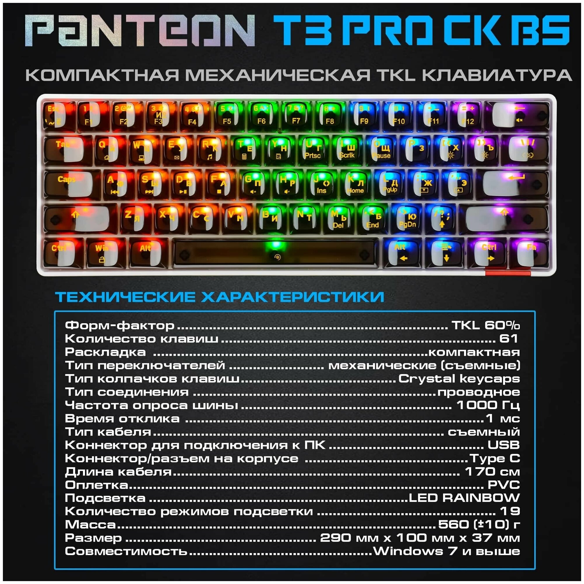 PANTEON T3 PRO BS HS RGB White (31) Механическая клавиатура (TKL 60%, подсветка LED RGB, Jixian Black, 61 кл, HotSwap, USB), цвет: белый (31)