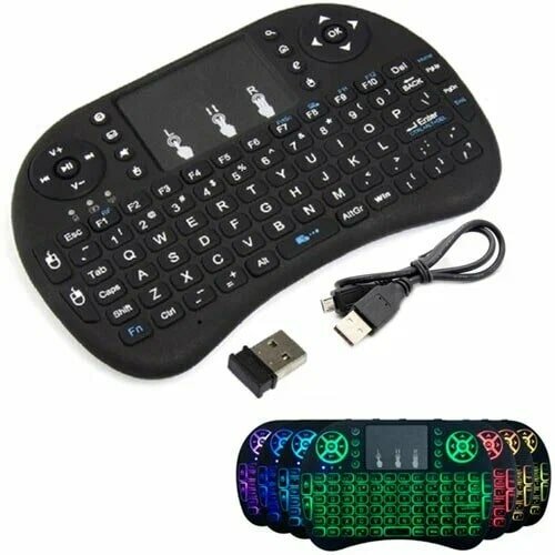 Думала, что она беспроводная и с блютуз , чтобы на смарт тв вводить текст , оказалось, что через переходник только . Подсветки нет, языки переключать не удобно, как и знаки препинания , цифры . Сейчас просто лежит . Подразочарована я , понимаю если хотя бы на телефон как дополнительное устройство ввода , можно было бы удобно использовать .