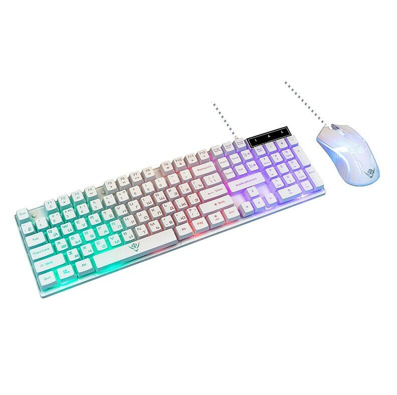 Купить Проводной игровой набор KMG-2305U WHITE Nakatomi Gaming - клавиатура + опт. мышь с RGB подсветкой