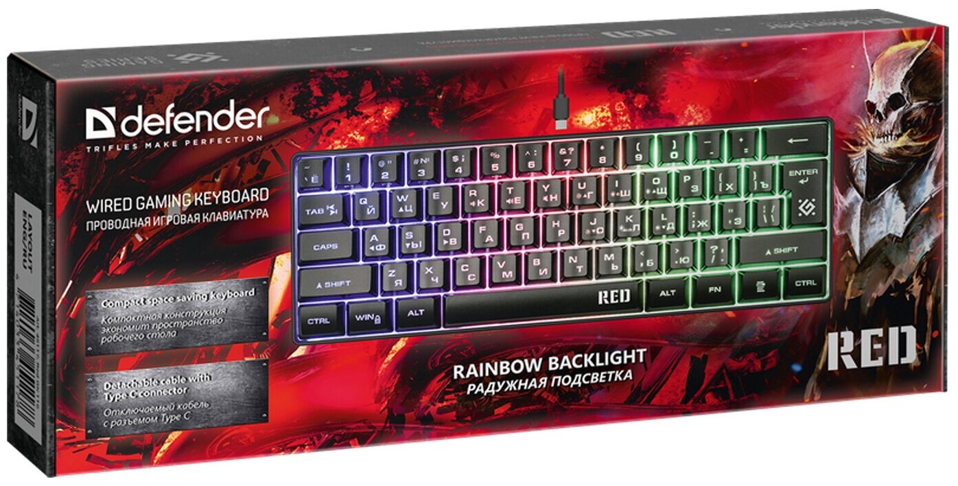 Клавиатура Defender игровая Red GK-116 RU,радужная подсветка, 61кнопка (45117)