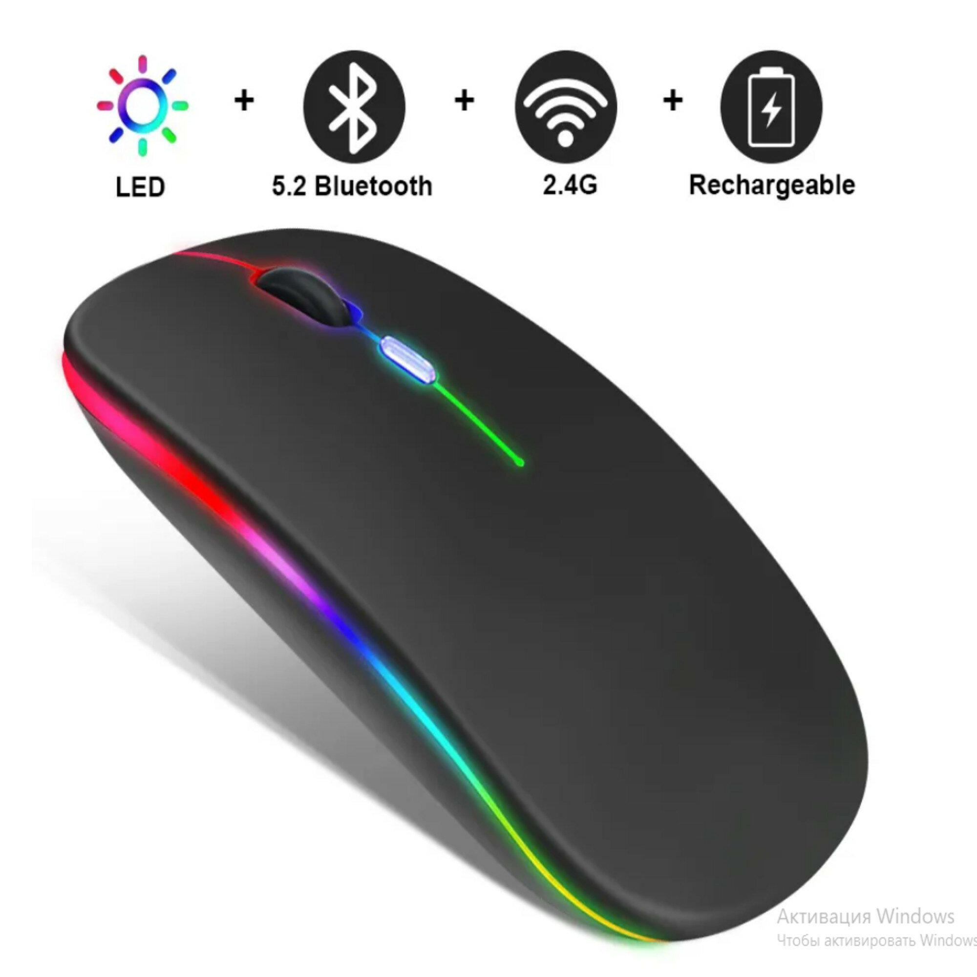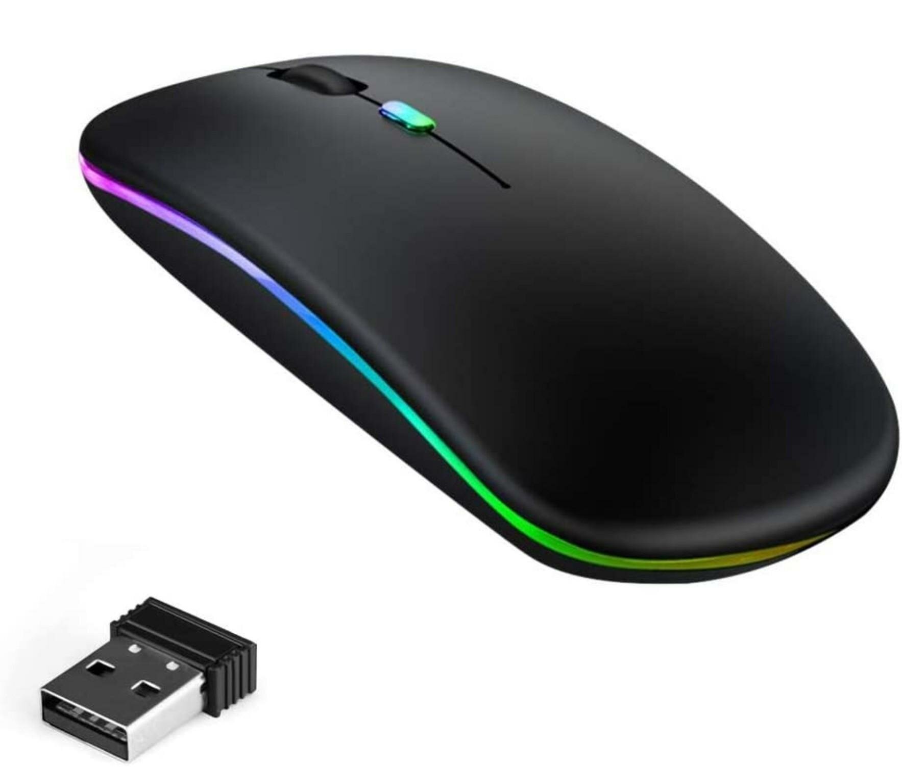 Купить Мышь беспроводная компьютерная аккумуляторная / 3 режима DPI (800/1200/1600) Bluetooth + USB 2.4Ghz / RGB подсветка / Черная