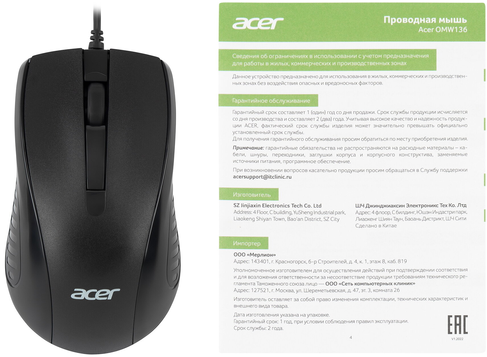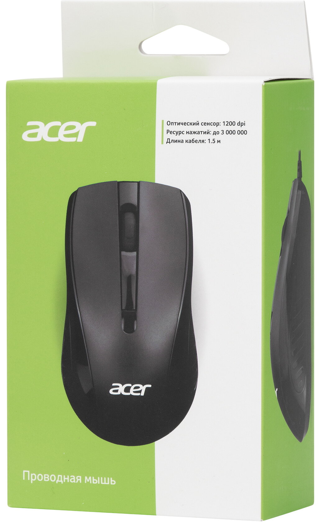 Мышь Acer OMW136 черный оптическая (1000dpi) USB (2but) интересное: