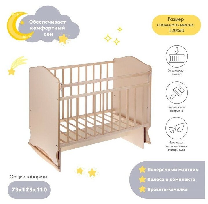Кровать детская Морозко колесо-качалка с маятником (сл.кость) (1200х600 ) ВДК 4811441 интересное: