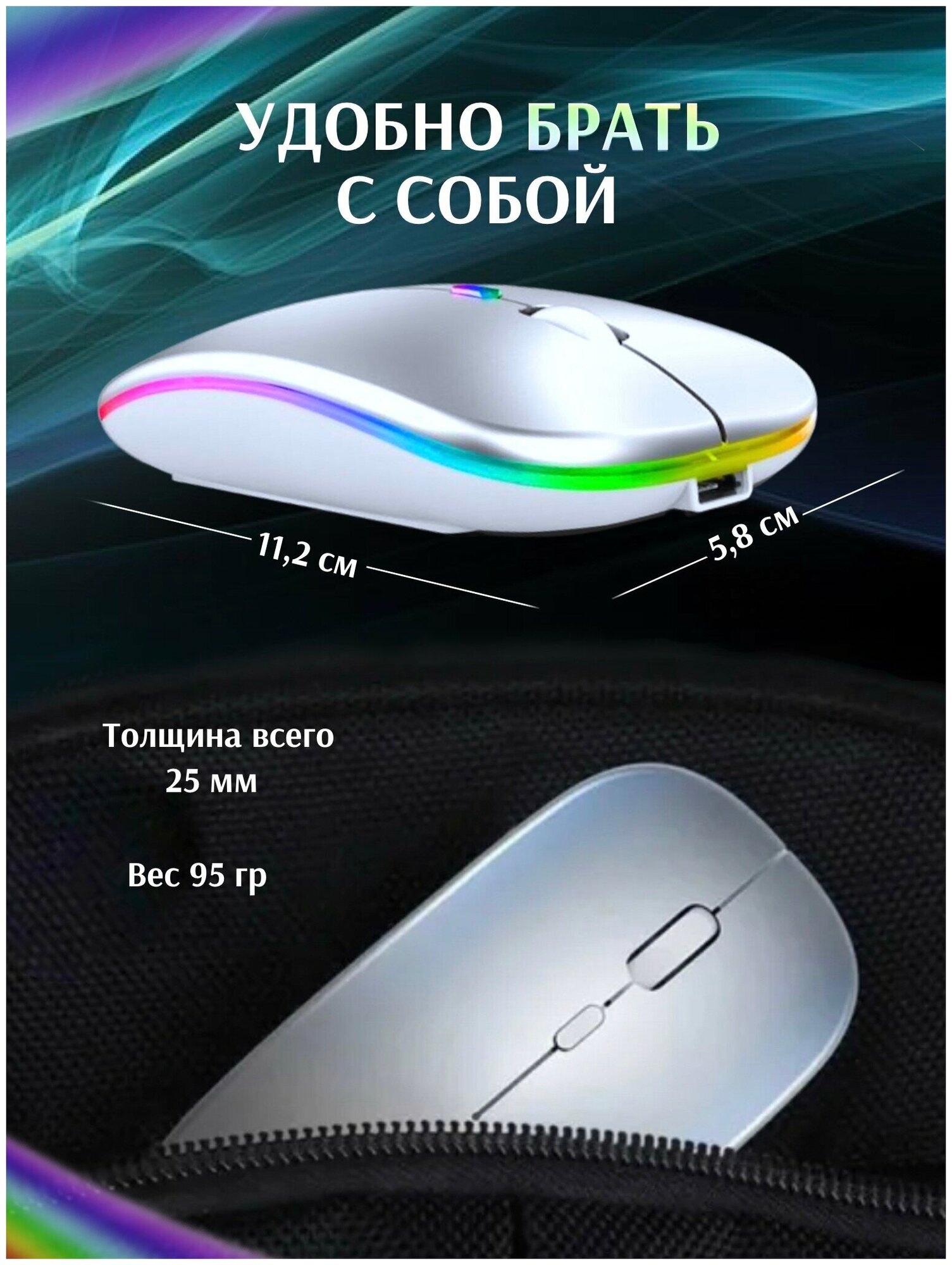 Мышка беспроводная бесшумная Bluetooth, серебристая интересное:
