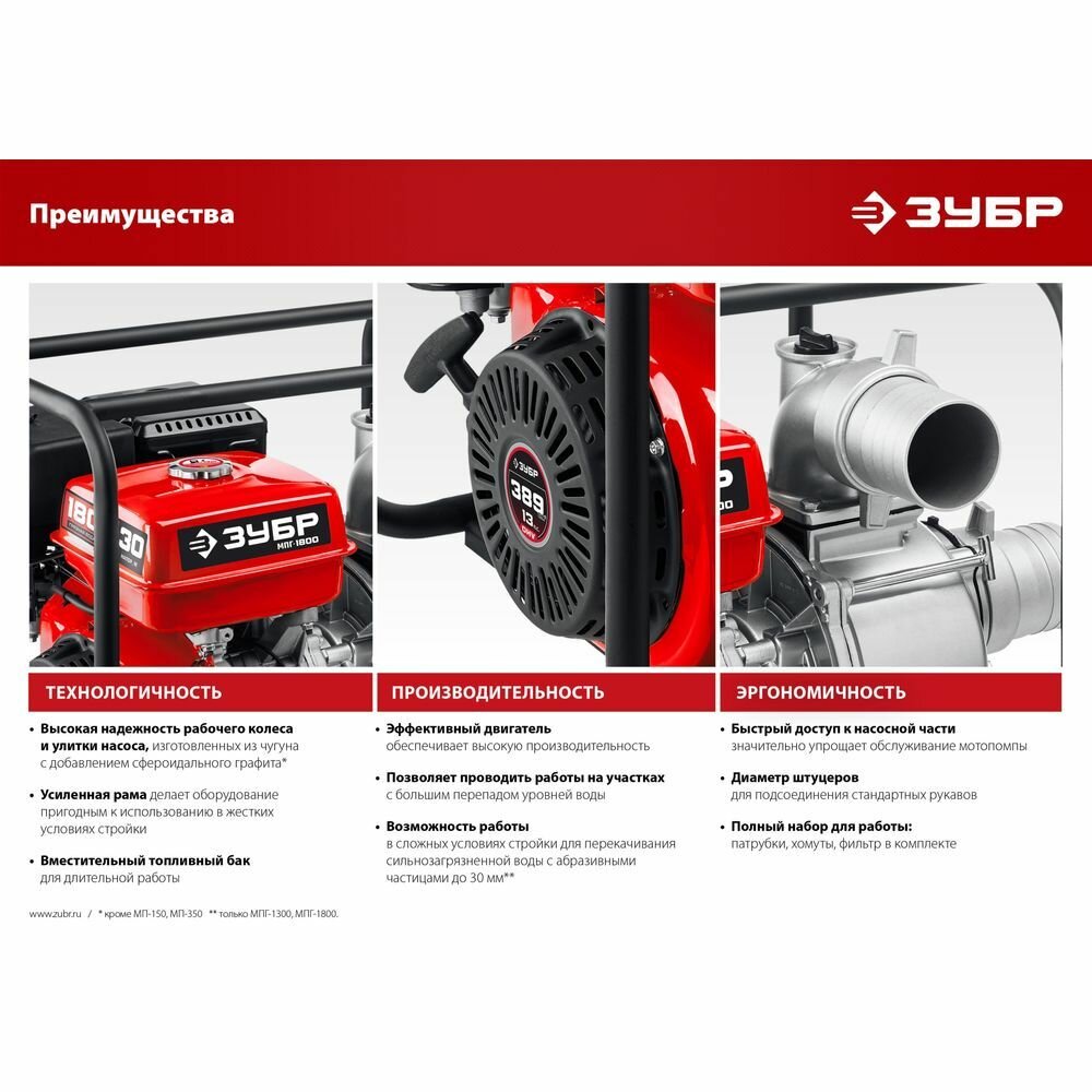 ЗУБР 350 л/мин, мотопомпа бензиновая МП-350 интересное: