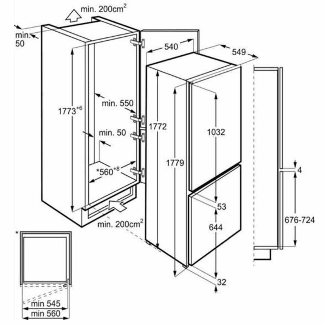 Встраиваемые холодильники SMEG/ 177.2х54.8х56 см, SN-N-ST-T, Холодильник с вентилятором, морозильник no-frost