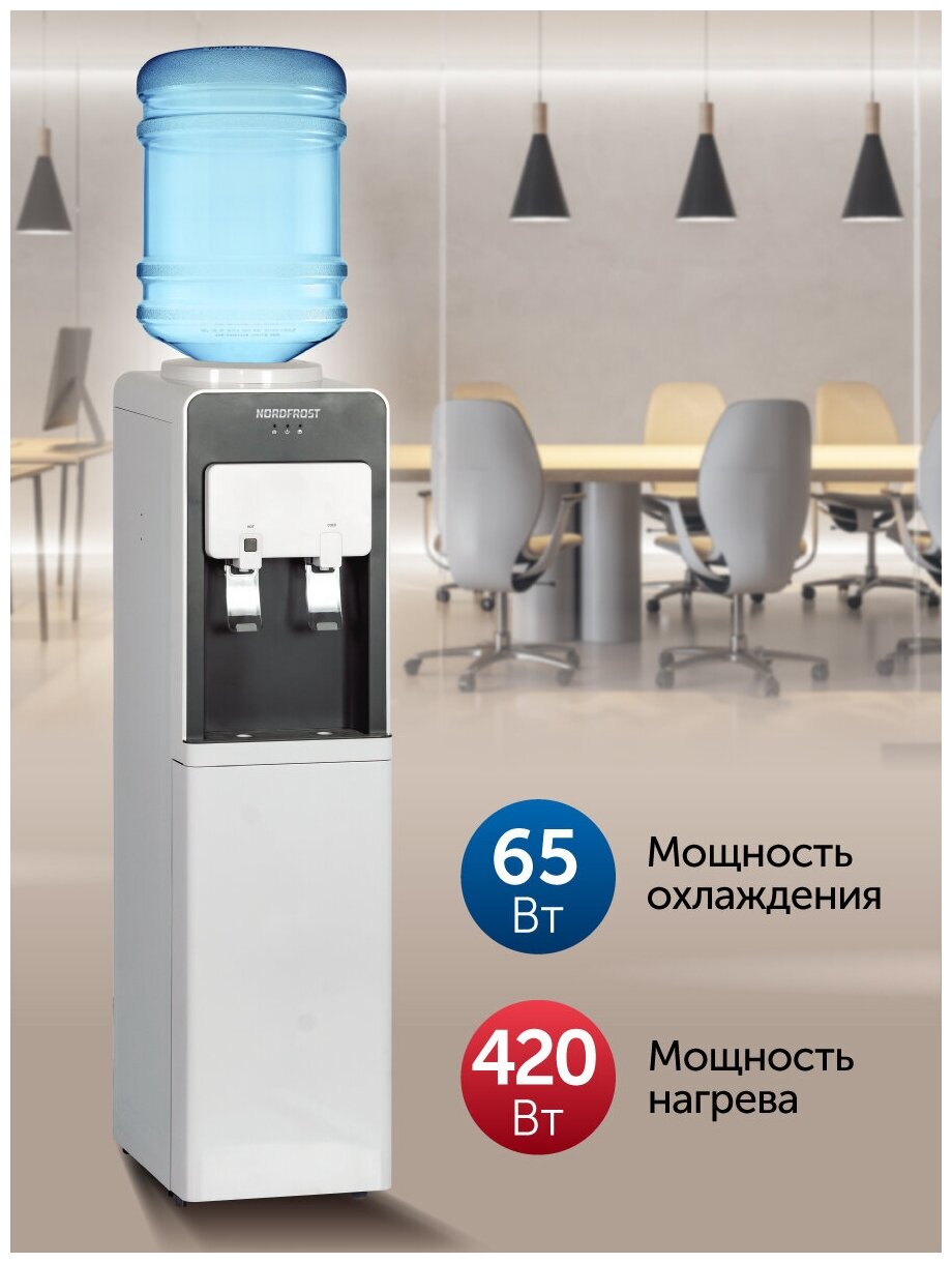 Напольный кулер для воды NORDFROST F-60W с электронным охлаждением и нагревом, с шкафчиком, белый, для дома и офиса