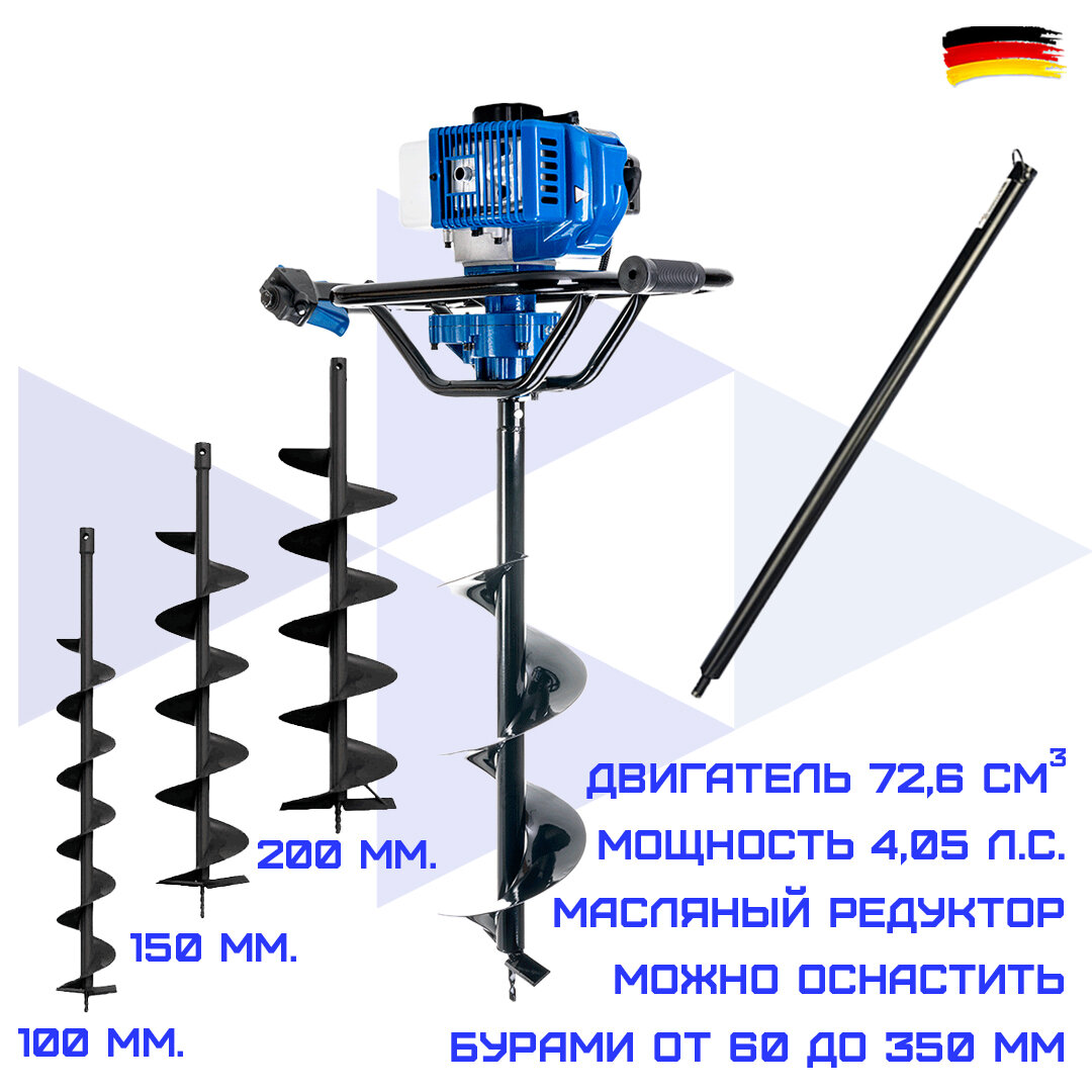 Мотобур бензиновый HAITEC HT-MB172-350SET 4,05 л.с. с комплектом шнеков 100-150-200 мм интересное: