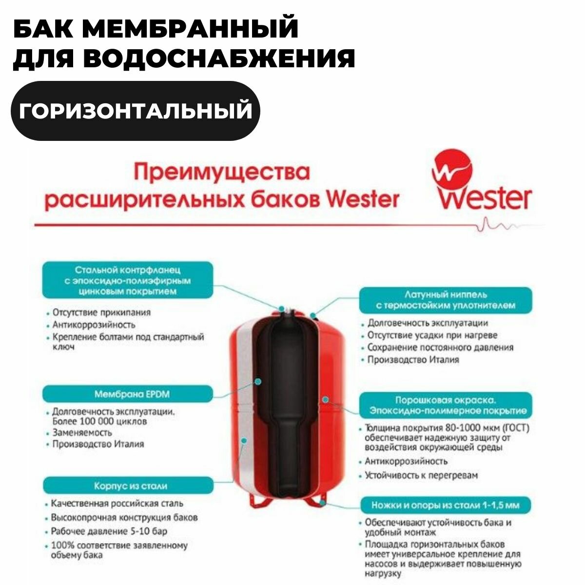 СохранитьБак мембранный для водоснабжения горизонтальный Wester Premium WAO150 c нержавеющим контрфланцем интересное:
