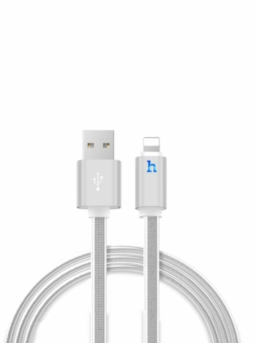 Кабель USB HOCO UPL12 Metal Jelly Knitted , USB - Lightning, 2.1А, 1.2 м, серебристый, с индикатором