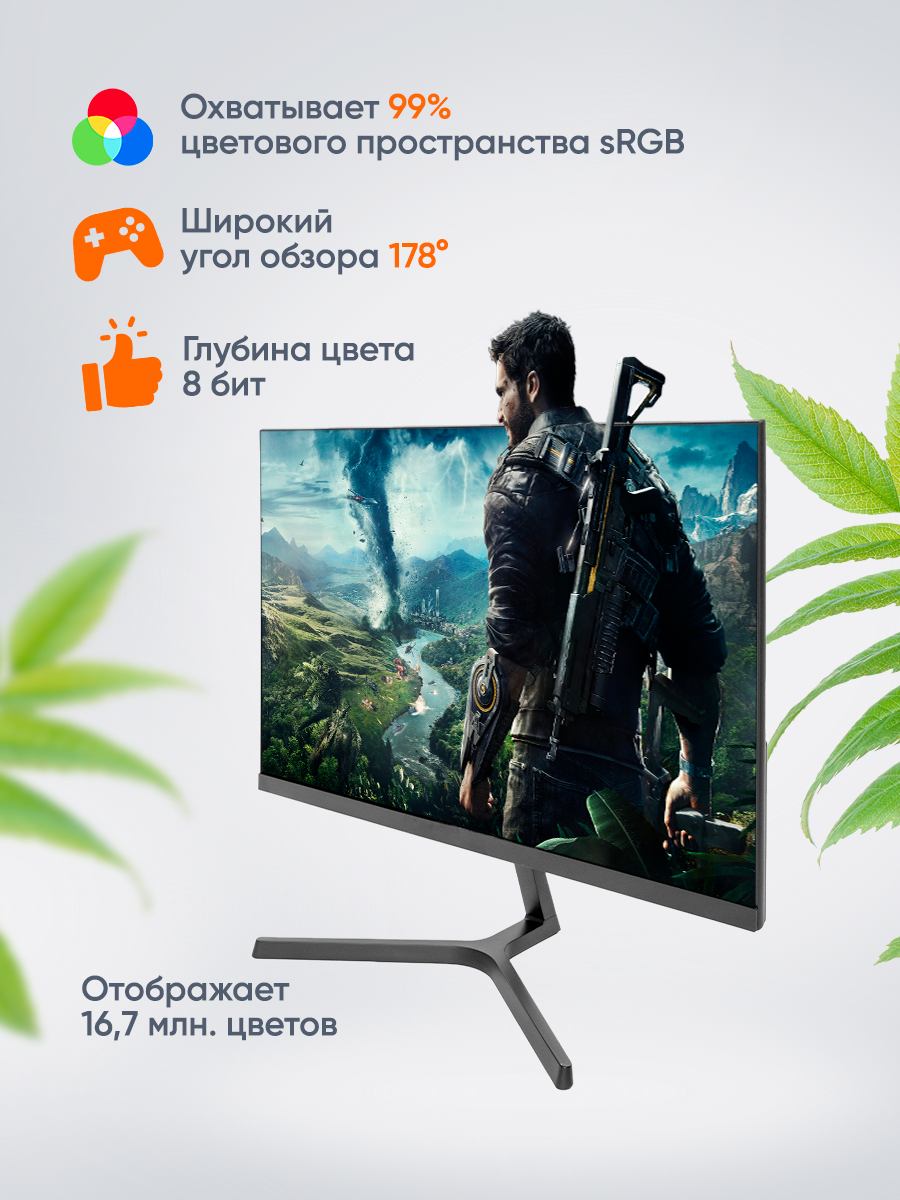 в целом монитор за свою цену полностью устраивает, сборка простая, радует также металлическая подставка монитора и 75 герц, советую брать в качестве второго монитора