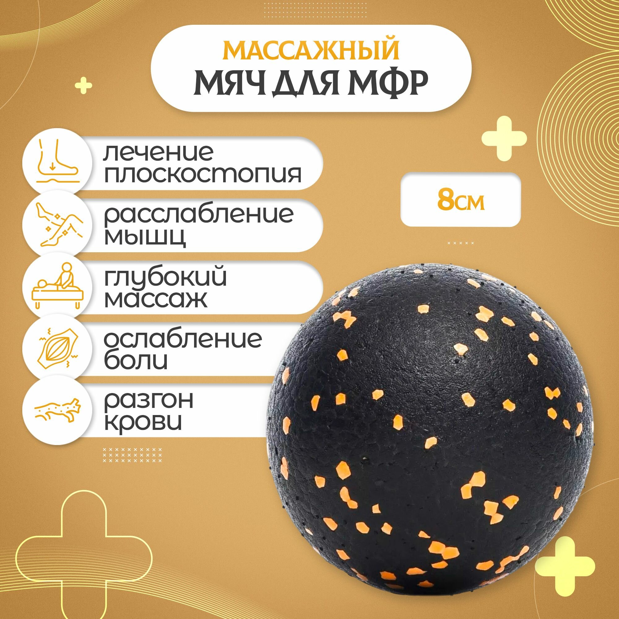 Мяч массажный / Мяч для МФР / Шарик массажный, 8 см черно-желтый интересное: