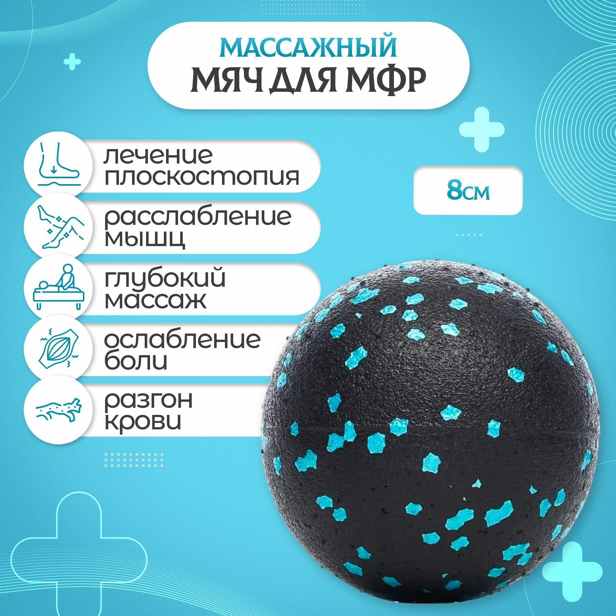 Мяч массажный / Мяч для МФР / Шарик массажный, 8 см черно-голубой интересное: