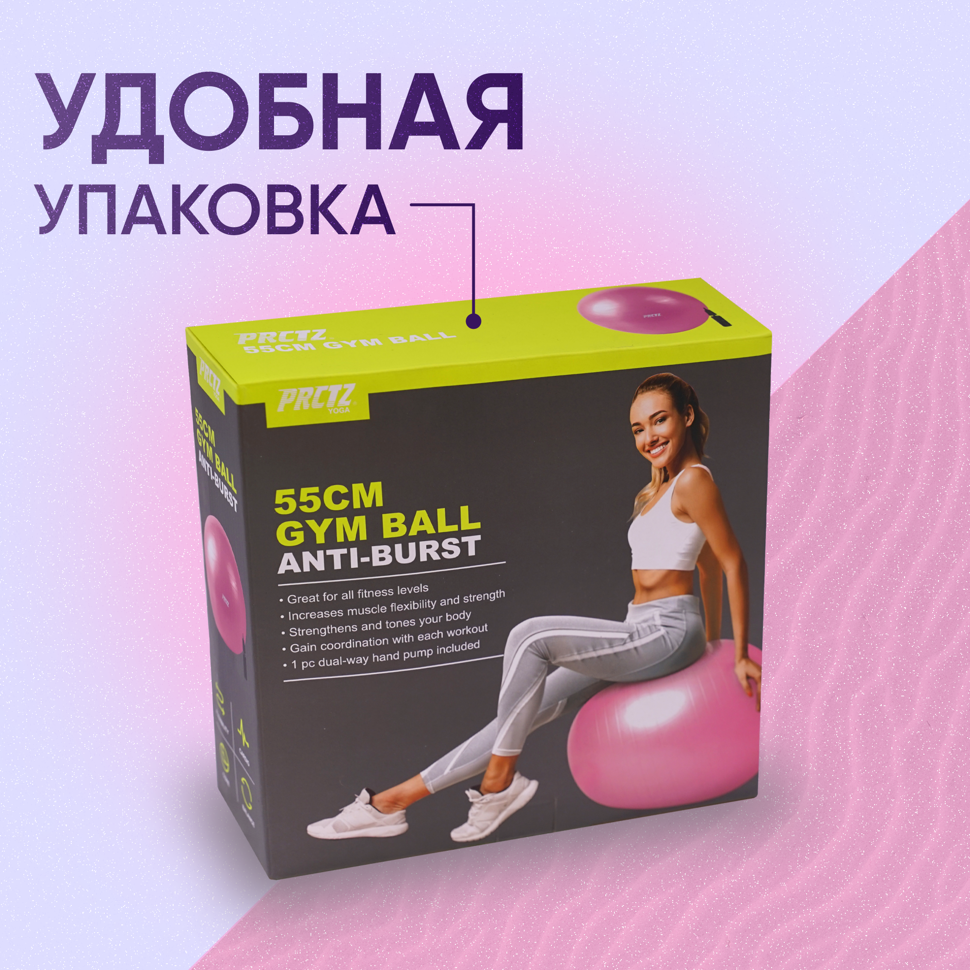 Фитбол PRCTZ GYM BALL ANTI-BURSTмяч для фитнеса, 55 см гимнастический мяч PRCTZ
